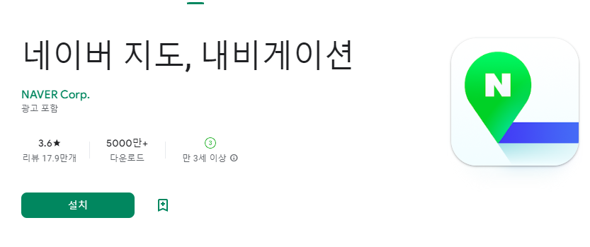 ▲ 위 사진은 구글 플레이 스토어에서 검색 한 네이버지도 어플리케이션의 참고 예시 사진입니다.