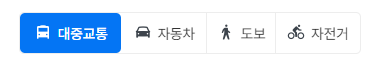 길찾기 기능을 선택하면 '대중교통', '자동차', '도보', '자전거'의 이동 수단 선택 기능이 있습니다. 가장 먼저 이동 수단을 선택합니다.이동 수단에 맞는 경로를 안내받기 위해서 입니다.