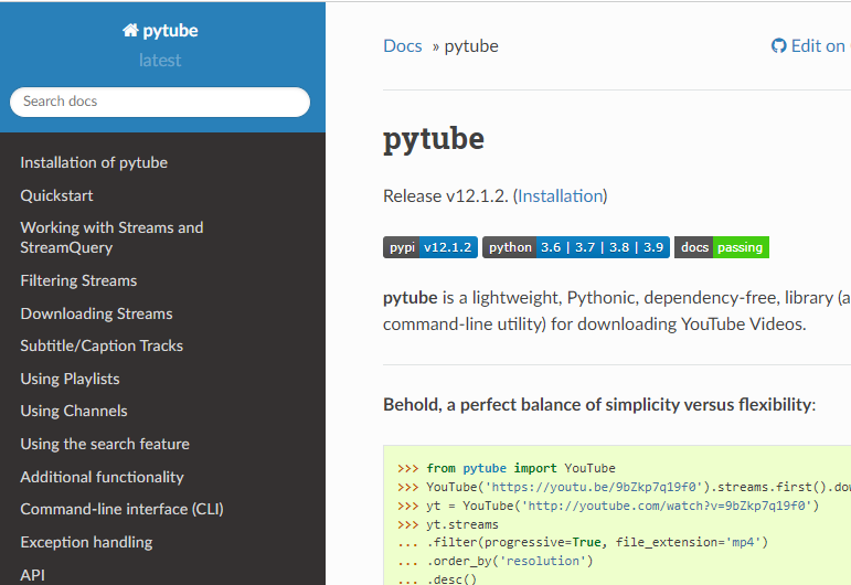 해당 라이브러리의 이름은 'pytube'입니다. 검색을 통해 공식 문서, 홈페이지에 접속할 수 있습니다. 파이썬 코딩에 대한 조금의 경험이 있다면, 해당 공식문서를 통해 기능을 구현할 수 있을 것입니다.