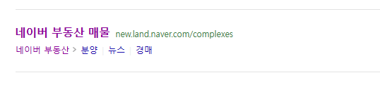 가장 먼저 네이버 부동산에 접속해야 합니다. 검색을 통해 쉽게 찾을 수 있습니다. 아래와 같이 검색 결과를 얻으면, 해당 페이지에 접속 할 수 있습니다.